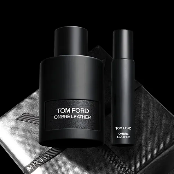 La fragancia Ombré Leather evoca la belleza desértica del oeste americano con un rico cuero negro bajo capas de pachul…