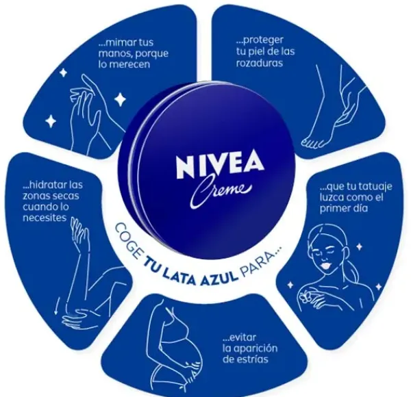 NIVEA Creme es la crema hidratante universal para el cuidado de todo tipo de piel, para toda la familia. Este icónico producto, que revolucionó el mundo del cuidado de la piel hace más 100 años, cuenta con una fórmula «»única»» libre de conservantes: emulsión de agua en aceite con ingredientes de conocida eficacia tales como Pantenol, Eucerit o Glicerina entre otros que proporcionan a la piel toda la hidratación que necesita para mantenerse suave y flexible. La crema NIVEA en la lata azul de 400 ml es ideal para el uso diario de cualquier parte del cuerpo, para cualquier edad, en cualquier época del año. Hidratación intensiva y duradera en tamaño familiar.