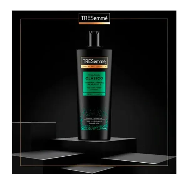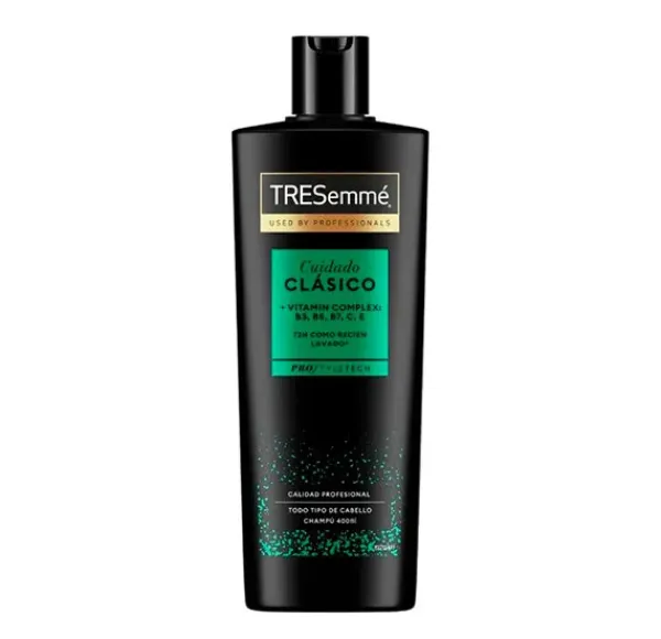 El champú TRESemmé Cuidado CLÁSICO, revitaliza tu cabello con la ayuda de nuestro sistema de Cuidado Clásico, formulado con las Vitaminas B3, B5, B7, C, E, y diseñado para purificar y limpiar suavemente tu cuero cabelludo con cada lavado. 72 horas como recién lavado*.