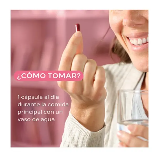 Complemento alimenticio que ayuda a las mujeres a sobrellevar los signos asociados a la menopausia, como sofocos, sudoración noctura, inquietud e irritabilidad durante la perimenopausia y posmenopausia.