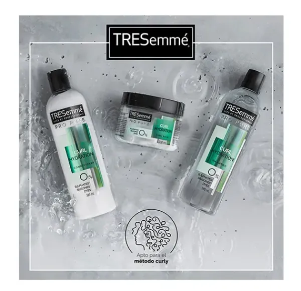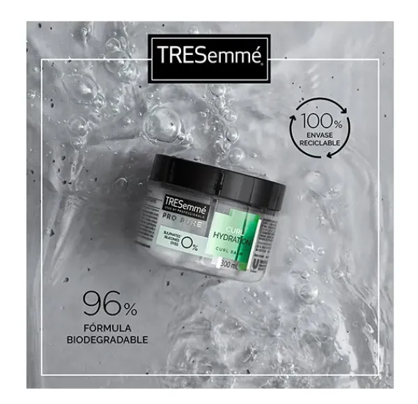La Mascarilla hidratante TRESemmé de la gama ProPure Curl, está formulada con 0% sulfatos, 0% siliconas y 0% colorantes. Nutre e hidrata tu cabello rizado dejándolo suave y definiendo y potenciando la forma natural de tus rizos. Contiene aceite de coco, un hidratante natural ideal para el cuidado del cabello seco y rizado. La mascarilla TRESemmé ProPure Rizos utiliza una fórmula más suave, pero a la vez altamente eficaz para penetrar en el interior del cabello, ofreciendo resultados profesionales sin comprometer la calidad del acondicionamiento.