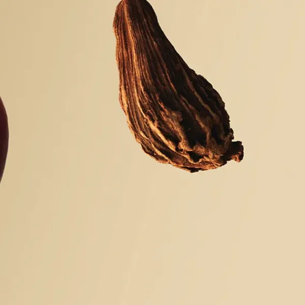- El corazón rico en especias se desarrolla con cálidos y adictivos aceites de cardamomo y canela.