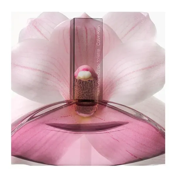 Esta fragancia Calvin Klein, elaborada con ingredientes naturales, entre ellos la esencia de rosa —un extracto de comercio justo certificado y de origen responsable—, se presenta en una versión actualizada del frasco de cristal transparente característico, diseñado para revelar el delicado y espléndido perfume, de tono rosa inspirado en el rocío.