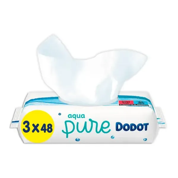 Las toallitas Aqua Pure Dodot están elaboradas con un 99% de agua para una limpieza delicada de la piel de tu bebé.