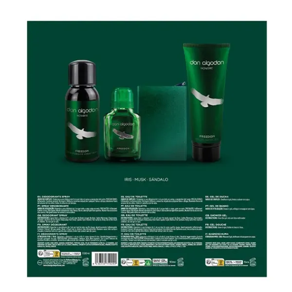 Libera tu espíritu aventurero con el Set de Regalo Freedom de Don Algodón. Incluye una colonia Freedom 30 ml, gel de ducha 75 ml, desodorante en spray 100 ml y un tarjetero metálico. Todo lo que necesitas para sentir la llamada de la naturaleza en tu día a día.