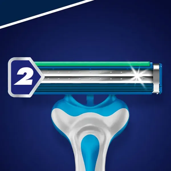 La maquinilla desechable para hombre Gillette BlueII Maximum tiene 2 hojas con revestimiento en cromo que alargan su vida útil.