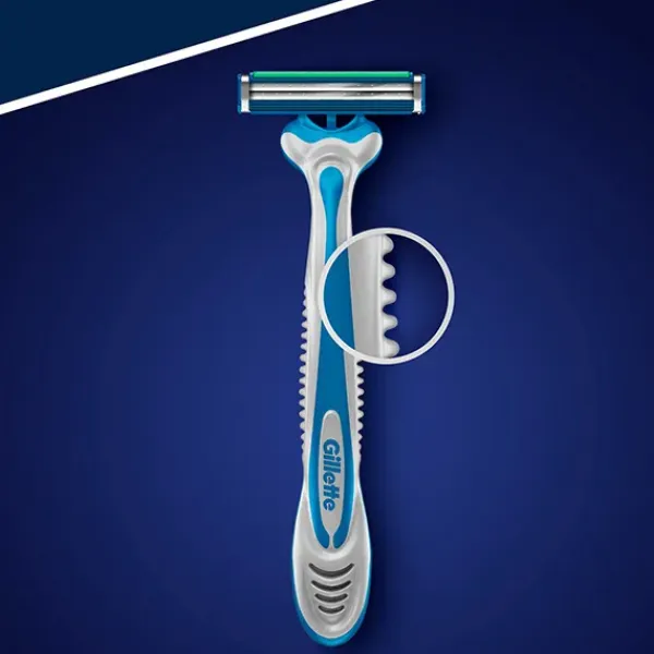 De esta forma, no tienes que cambiar de maquinilla tan a menudo. Tiene una banda lubricante que proporciona un deslizamiento suave. La maquinilla de afeitar cuenta con un cabezal pivotante que se adapta a los contornos de la cara, con hojas de fácil aclarado y un mango cómodo de fácil agarre para un control y una manejabilidad perfectos.