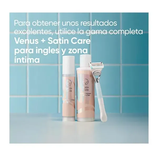 El sérum hidratante diario Venus Satin Care se usa después de la depilación para proporcionar hidratación, calmante y reducir el picor.