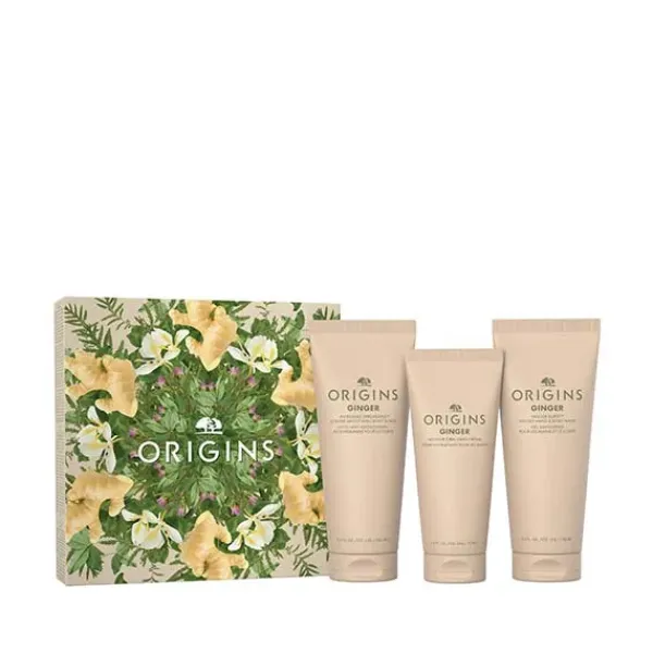 Un trío de productos favoritos para el baño y el cuerpo con jengibre, dignos de un spa, perfectos para cualquiera de las mujeres de tu vida que se merezcan una celebración.