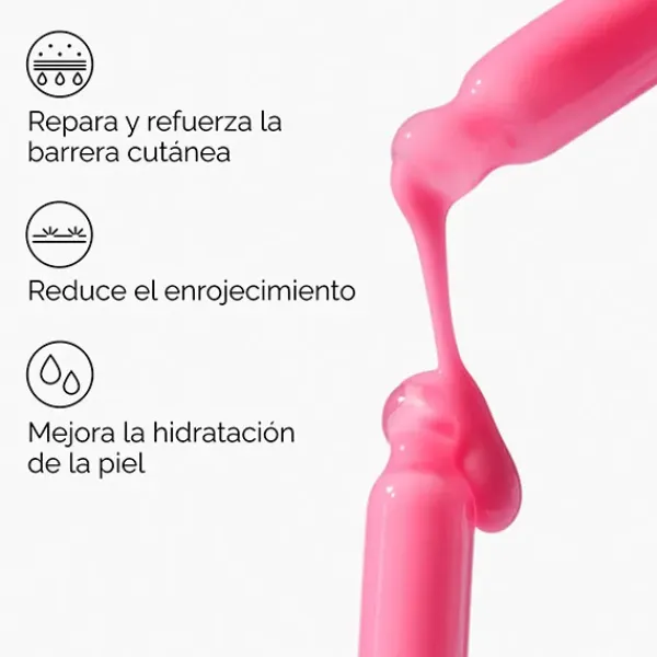 Ayuda a mantener la barrera cutánea al reducir la sequedad y las rojeces, al tiempo que confiere el tono rosado característico del suero.