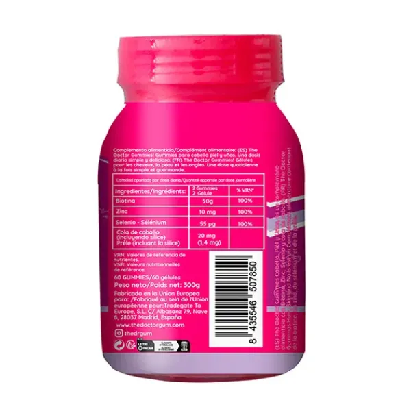 The Doctor Gummies con sabor a frambuesa contribuyen al crecimiento y fortalecimiento del cabello, también ayuda al crecimiento y fortalecimiento de las uñas y la piel.