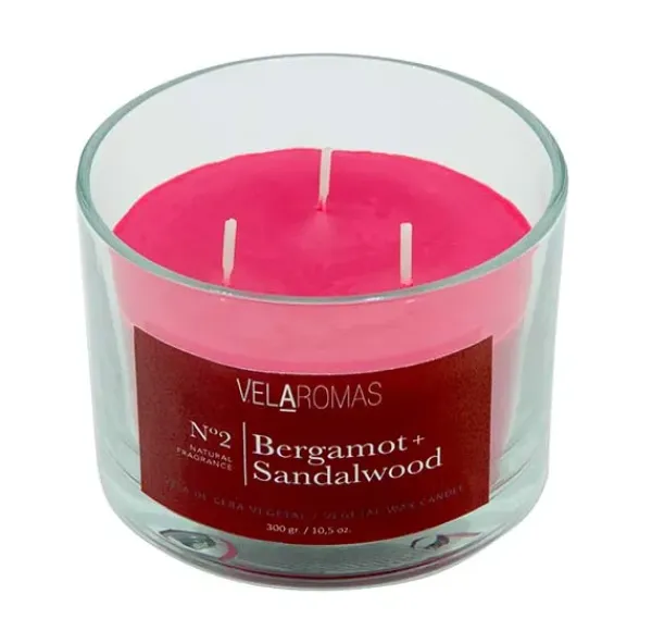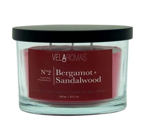 Vela 3 Mechas con tapa de cera vegetal con fragancia a BERGAMOTA SANDALWOOD