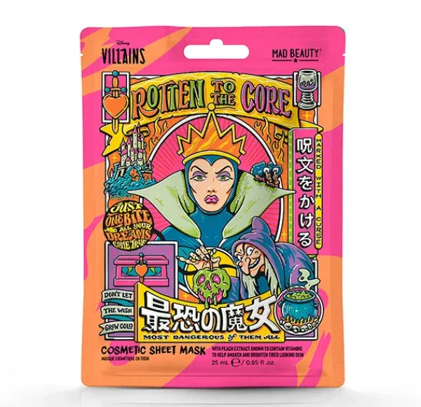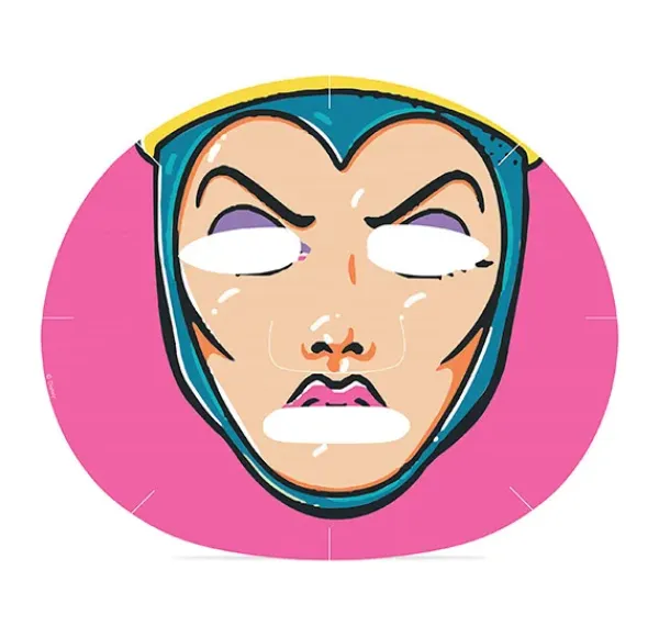 Da rienda suelta a la reina que llevas dentro y calma tu lado oscuro con una mascarilla cosmética biodegradable inspirada en las Villanas Disney. En tres maravillosos diseños y fragancias, elige entre Maléfica con extracto de aguacate nutritivo, Reina Malvada con extracto de melocotón calmante y Cruella con coco hidratante. Cada mascarilla está impregnada de un sérum hidratante con ácido hialurónico para un extra de hidratación.