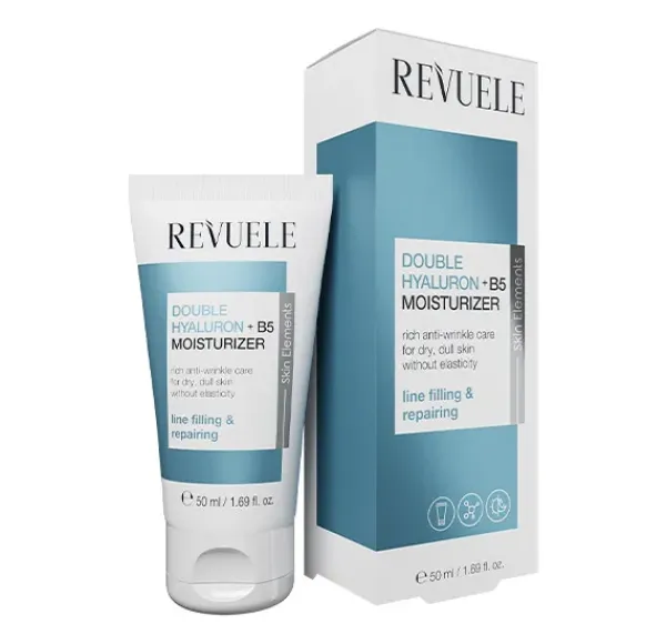 La crema hidratante Revuele double hyaluron + B5 es un tratamiento intensivo para el rostro y el cuello, con una textura delicada y ultra-hidratante.