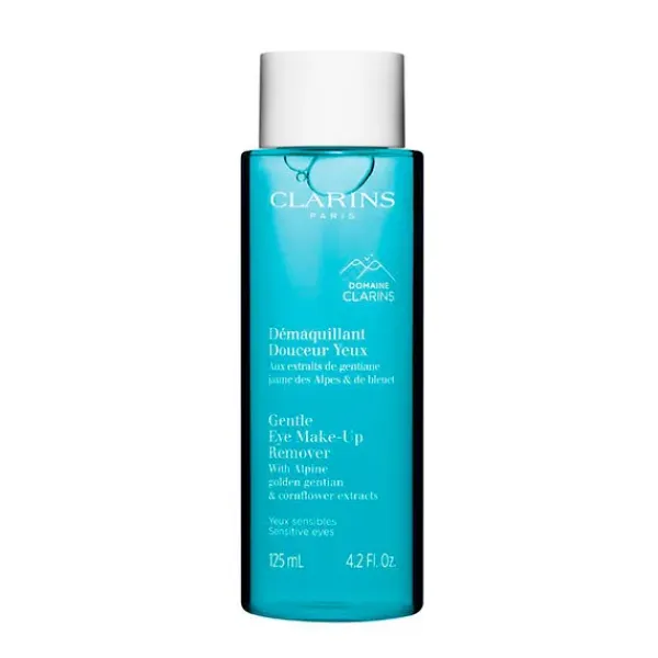 Este desmaquillante está enriquecido con extracto de genciana amarilla bio de los Alpes recolectada en el corazón de la Hacienda Clarins y extracto de aciano bio para una piel del contorno de los ojos calmada.