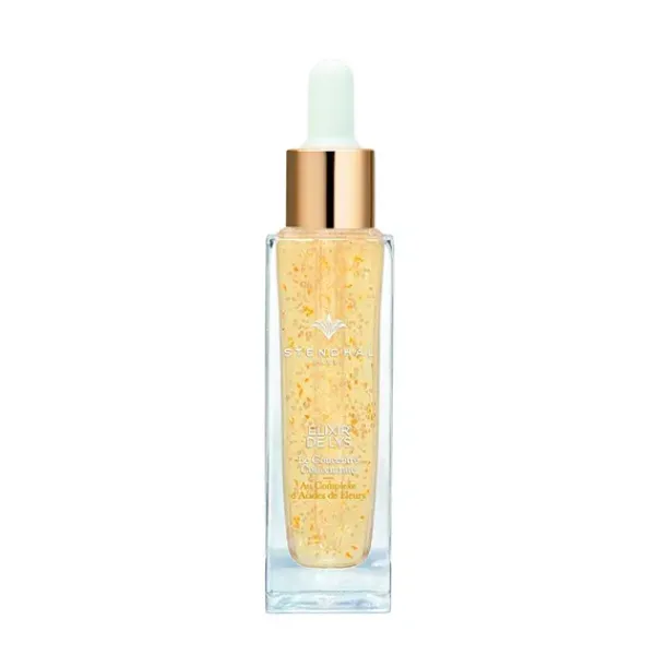 El Élixir de Lys™ es un verdadero néctar de luz, se combina con un complejo regenerador de ácidos florales y de pétalos de oro de 24 quilates para unificar e iluminar la piel, así como difuminar las manchas y las imperfecciones.