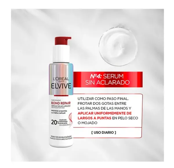 L'Oréal Paris Elvive Bond Repair Sérum sin aclarado. Rutina de reparación profunda de la fibra capilar desd…