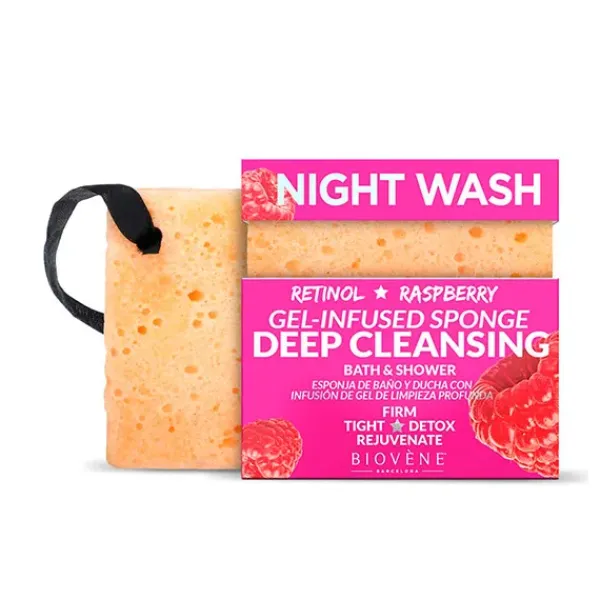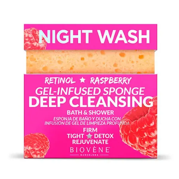 Esponja de baño y ducha multifuncional para limpieza profunda infundida con retinol extra reafirmante, frambuesa y aceite de coco que aprieta, hidrata y elimina instantáneamente la suciedad de la piel.