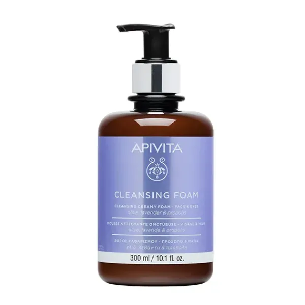 Crema espuma limpiadora con oliva, lavanda y propóleo que limpia eficazmente el rostro y los ojos sin resecar la piel.