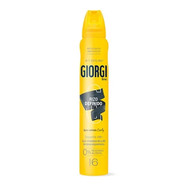 Prueba la Espuma Rizos Definidos Control 48h de Giorgi, la espuma para definir y controlar incluso los rizos más rebeldes durante más tiempo y sin encrespamiento gracias a sus activos acondicionadores, durante 48 horas. Con Vitaminas B3 y B5 que protegen y cuidan el cabello para que luzca hidratado, brillante y suave.