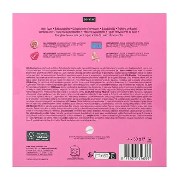 Sumérgete en el alegre espíritu navideño del mundo Barbie con el Set de Regalo Sence Barbie Bath Fizzer. Estos efervescentes hacen su magia, transformando tu baño en un relajante y radiante país de las maravillas rosa. Miman tu piel y te envuelven en un aroma de ensueño de frutas de invierno y celebración festiva.