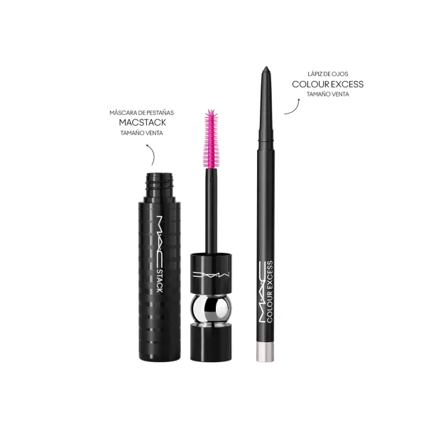 Haz de tu mirada la estrella con este exclusivo kit de ojos de edición limitada que incluye nuestra máscara #1 M·A·CStack y M·A·C Colour Excess Gel Pencil Eye Liner en Glide or Die. M·A·CStack Mascara una mascara de pestañas que aporta volumen y longitud infinitos capa tras capa. M·A·C Colour Excess Gel Pencil Eye Liner es un delineador en gel ultra preciso y waterproof con 24 horas de duración en el párpado y 12 horas de duración en la línea de agua. El kit perfecto para regalar esta Navidad
