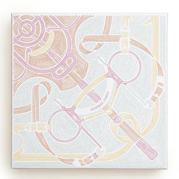Con motivo del Día de la Madre, los estuches de los perfumes Hermès se visten con el diseño «Éperon d’or sellier», firmado por Henri d’Origny. Un delicado laberinto formado por hilos de colores que, como bordados con pespunte guarnicionero, dibujan en la caja naranja bocados, hebillas y espuelas.