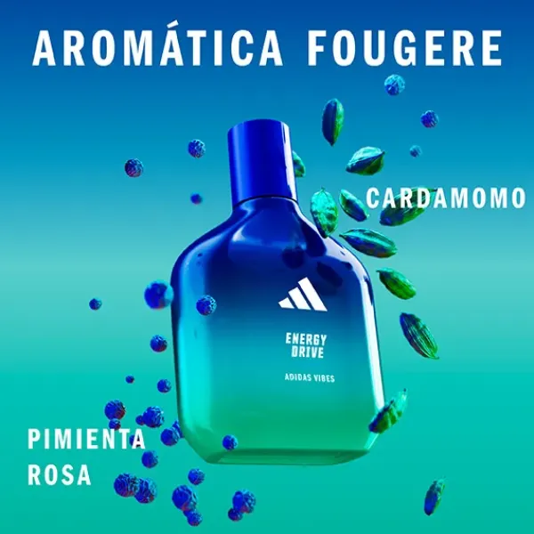El set de regalo Adidas Vibes ENERGY DRIVE, incluye dos formatos de Eau de Parfum y un gel de ducha de la gama. Energy Drive Eau de Parfum es una fragancia de larga duración con notas de Cardamomo y Pimienta Rosa, que te proporciona una explosión imparable de energía, como si nada pudiera interponerse en tu camino.
