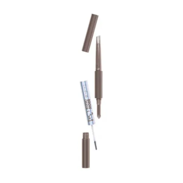 Un completo producto de maquillaje de cejas: un lápiz preciso, un gel y polvos para cejas en uno.