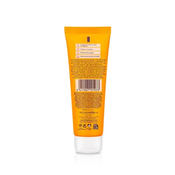 Protector facial muy alta especial para piel sensibles. Cuida especialmente las pieles más delicadas y reactivas. Ideal para calmar y proteger la piel sensible No deja residuo graso, con una textura suave y de rápida absorción, perfecta para el confort de pieles propensas a la irritación