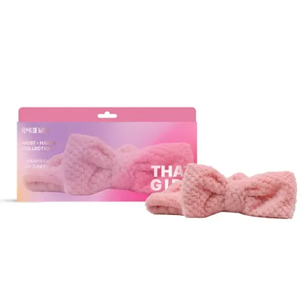 Maquíllate dónde sea y sin complicaciones con este turbante coquette para el cabello.