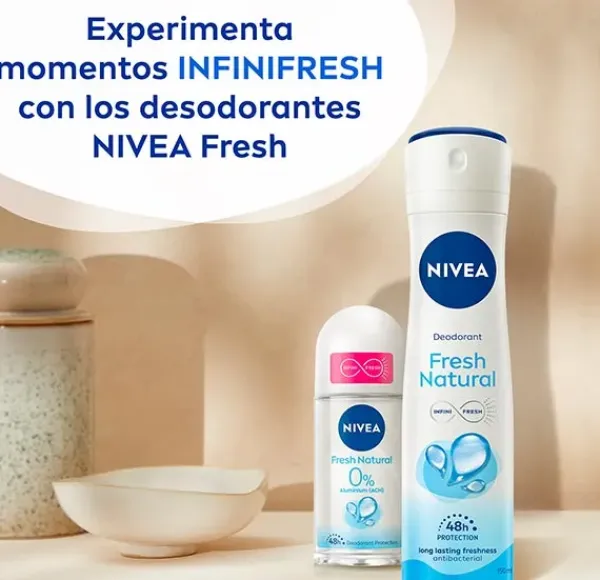 2. PROTECCIÓN: Aplícate el desodorante NIVEA Fresh Natural 0% Aluminio. Deja secar completamente.