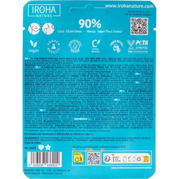 Eliminar y proteger los granos nunca había sido tan fácil y divertido. Con los parches en forma de corazón y estrellas con tecnología hidrocoloide de Iroha Nature se eliminarán los granos por completo en solo 8 horas, reduciendo el sebo e inflamación de los poros obstruidos y cicatrizando la piel sin irritarla.