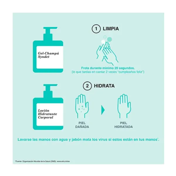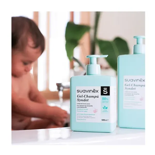 Gel-champú Syndet Suavinex sin jabón. No pica en los ojos.