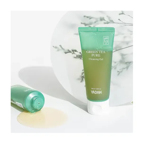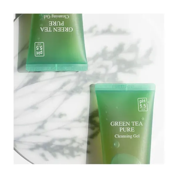 Un gel limpiador de pH equilibrado con agua de té verde que elimina suavemente las impurezas sin alterar el equilibrio natural de la piel.