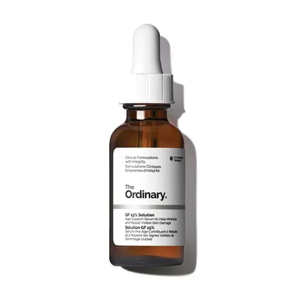 las líneas de expresión y las arrugas: GF 15% Solution ayuda a regenerar el aspecto de la piel al reducir la apariencia de las líneas de expresión y las arrugas, incluidas las patas de gallo, las líneas de la frente y las líneas de la sonrisa.