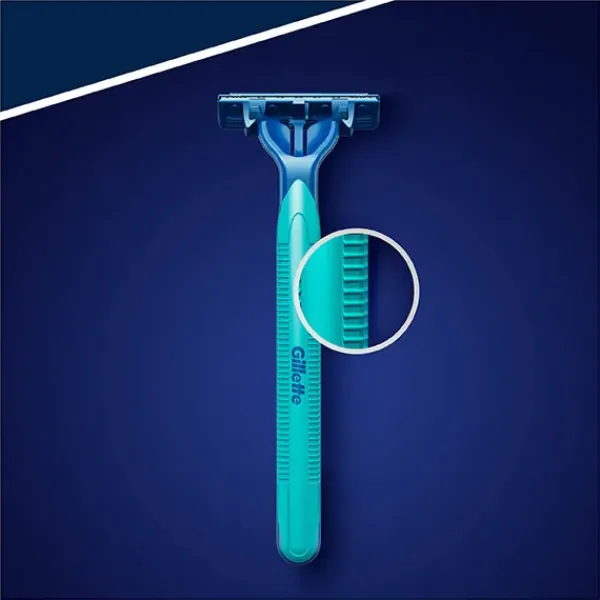 Las maquinillas desechables Blue II Plus 5 unidades de Gillette están compuestas por 3 hojas gemelas con una acción pivotante y una banda Lubrastrip que ayuda a que las hojas se deslicen fácilmente sobre la piel.