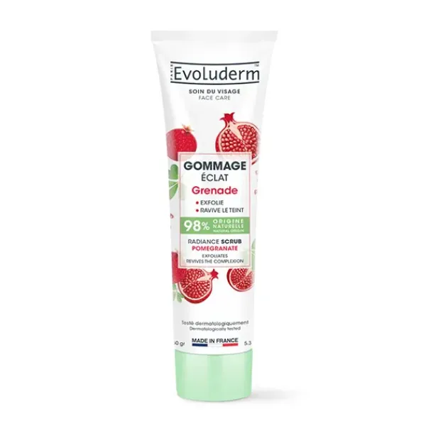 Exfoliante iluminador de granada formulado con un 98% de ingredientes de origen natural, exfolia suavemente y libera la piel de sus impurezas.