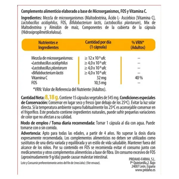 Contiene 12 mil millones de microorganismos por cápsula.
