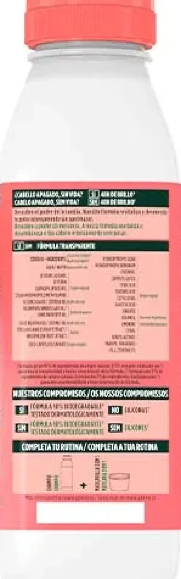 ¡Esta botella tiene más de una vida! Es reciclable y está hecha con un 50% de plástico reciclado para ayudar a reducir el uso de los recursos del planeta, deposítala en el contenedor amarillo. Desde 1989, Garnier está comprometida con un mundo sin test en animales. No ingerir.