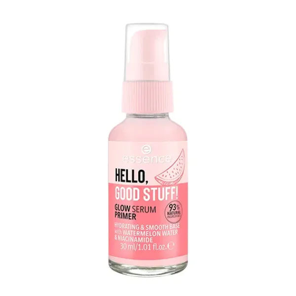 La prebase sérum HELLO, GOOD STUFF! GLOW está enriquecida con agua de sandía y niacinamida, y está elaborada con un 93% de ingredientes naturales.