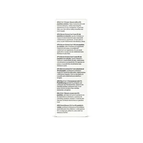 Sérum Crema 2 en 1 con peptides solution al 4%, ayuda a estimular la síntesis del colágeno, para reafirmar la piel, al mismo tiempo que hidrata y aporta confort a tu rostro.