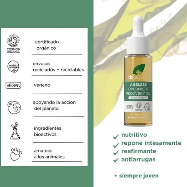 Este lujoso aceite facial orgánico certificado para la noche nutre intensamente y repone tu piel mientras duermes.