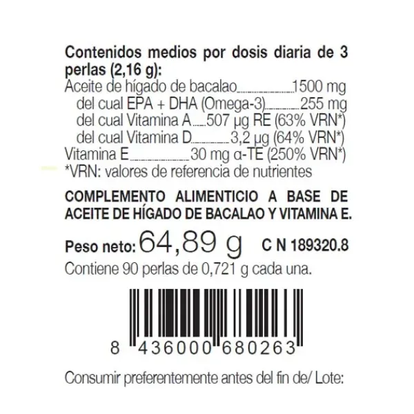El aceite de hígado de bacalao es un suplemento de vitamina D, A y ácidos grasos omega-3, especialmente EPA y DHA.
