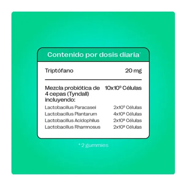 60 delciosas gominolas con sabor a manzana. Contiene una mezcla probiótica de 4 cepas cuidadosamente seleccionadas que trabajan en armonía para apoyar tu bienestar digestivo, tu sistema inmunológico y elevar tu estado de ánimo.