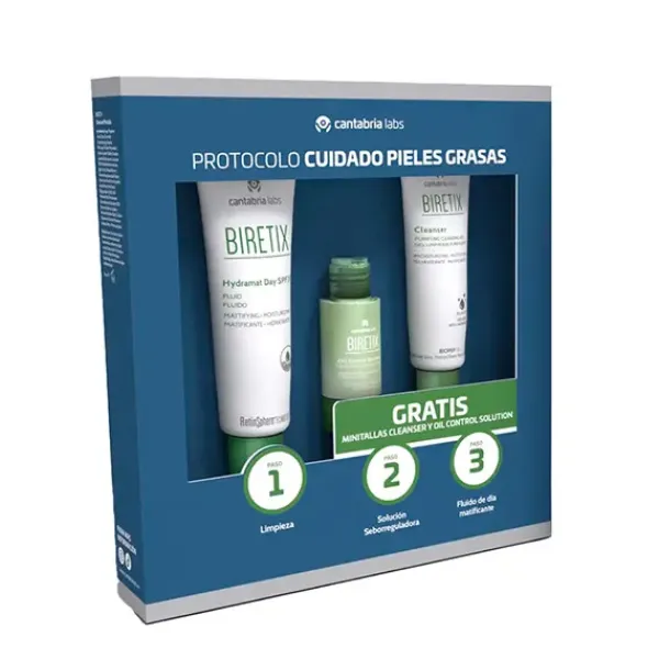 Biretix Hydramat Day SPF 30+Biretix Cleanser Minitalla+Biretix Oil Control Solution Minitalla