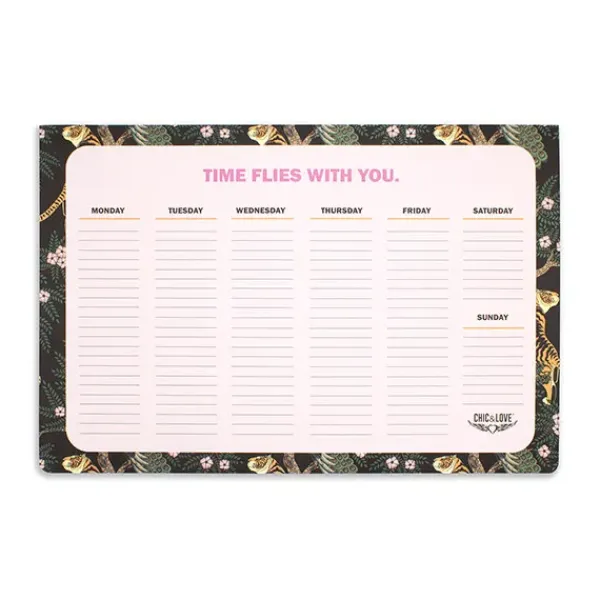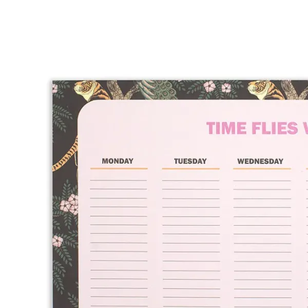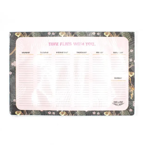 Organizador semanal color malva, con borde con estampado animal, con 52 hojas arrancables.