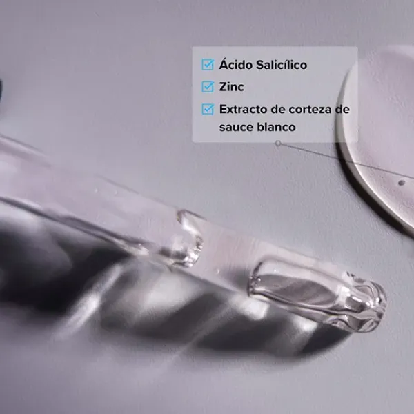 – Enriquecido con Ácido Salicílico, Zinc PCA y Extracto de Corteza de Sauce Blanco.
