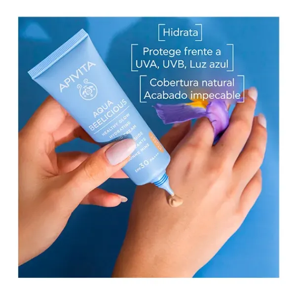 Crema fluida iluminadora hidratante con color de textura ligera, formulada por expertos con una fusión de flores de cistus, iris, rosa salvaje y miel, ingredientes súper hidratantes para reponer instantáneamente la hidratación de la piel.