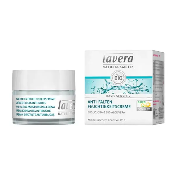 La Crema Hidratante Antienvejecimiento Lavera con su composición Q10 de ingredientes activos especialmente desarrollada combate los signos del envejecimiento cutáneo.